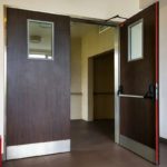Если высота здания превышает четыре этажа, двери могут быть оснащены остеклением.